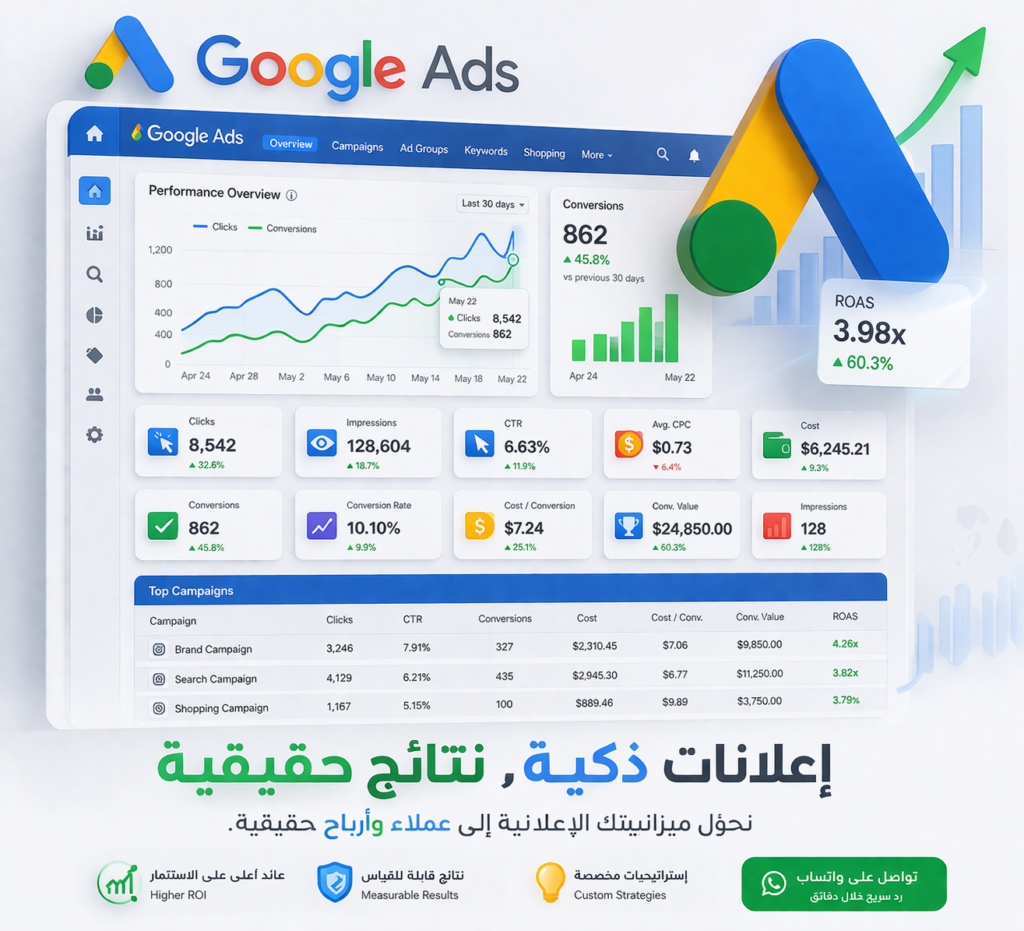 أهلاً بك، أنا صالح المرشد، خبير إعلانات Google معتمد في الرياض. إذا كنت تبحث عن متخصص لإدارة حملاتك الإعلانية، فأنت في المكان المناسب.